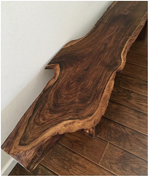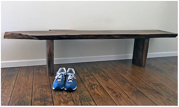 - A hand-crafted wood bench made by Kurtis Kruger.